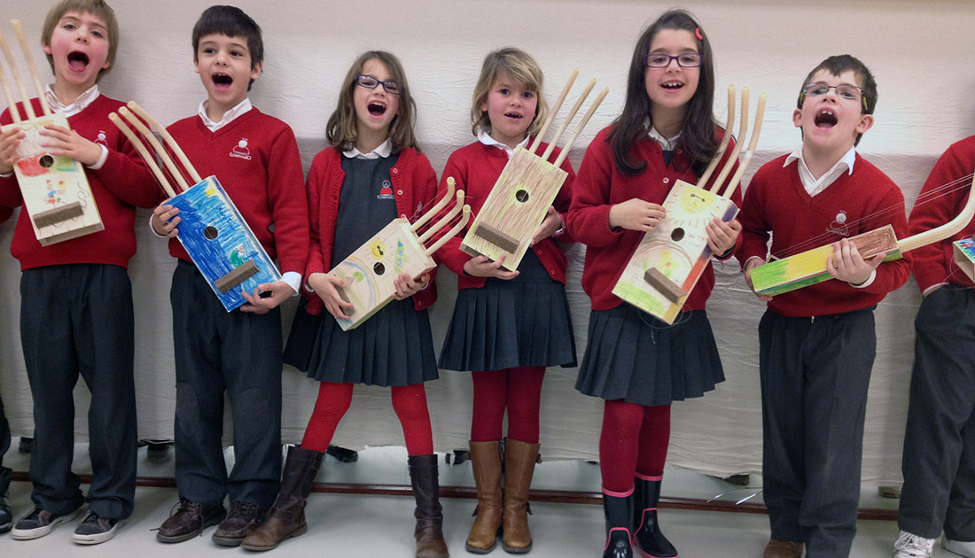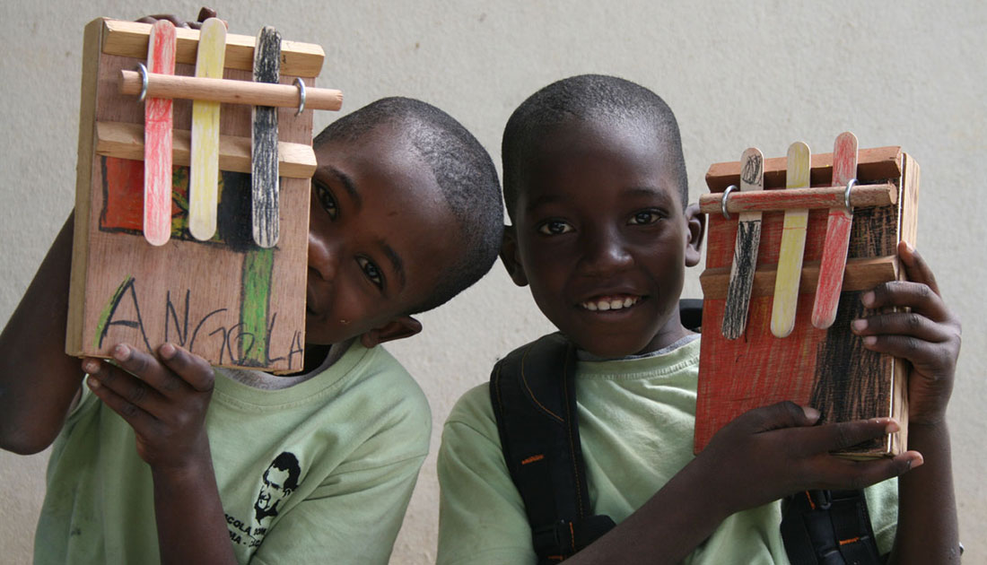 Pangeia Kids is an exciting workshop where kids can build, decorate and play their own instruments. Additionally the workshop can include their parents or it can be tailored for older kids. Several different types of musical instruments can be built: the thumb piano or kissange, an African instrument made out of a wooden box and wooden keys that can be plucked; the noisy wheel, an instrument made out of a flexible tube with a little marble ball inside; the txiumba an instrument derived from a traditional instrument from Angola, with a wooden box, three bows and strings, usually known as a pluriharp.